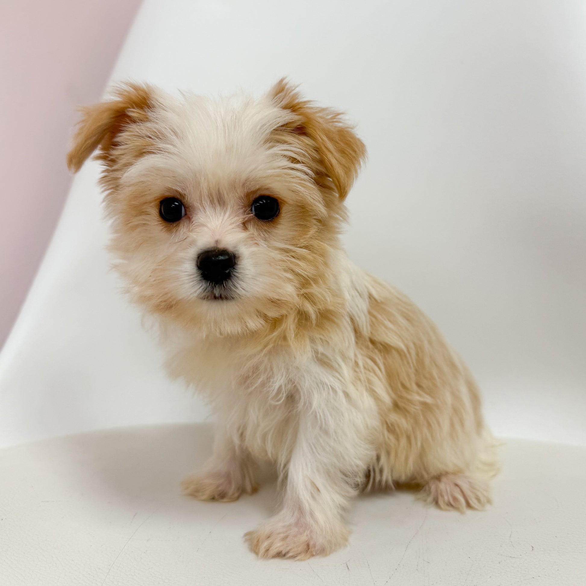 Meet Biscuit, the adorable male Morkie! With his cream and white fur, this little fluff ball will bring joy and laughter to your home. Perfect for cuddling and playing, Biscuit is the perfect companion for anyone looking for some extra cuteness in their life. (Pawsitively charming!)