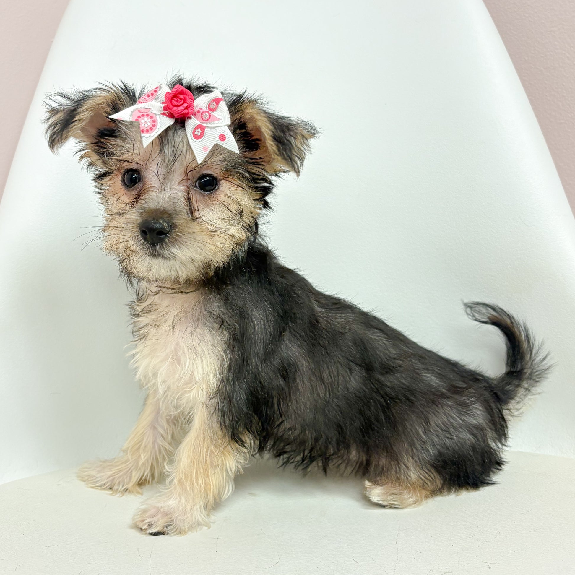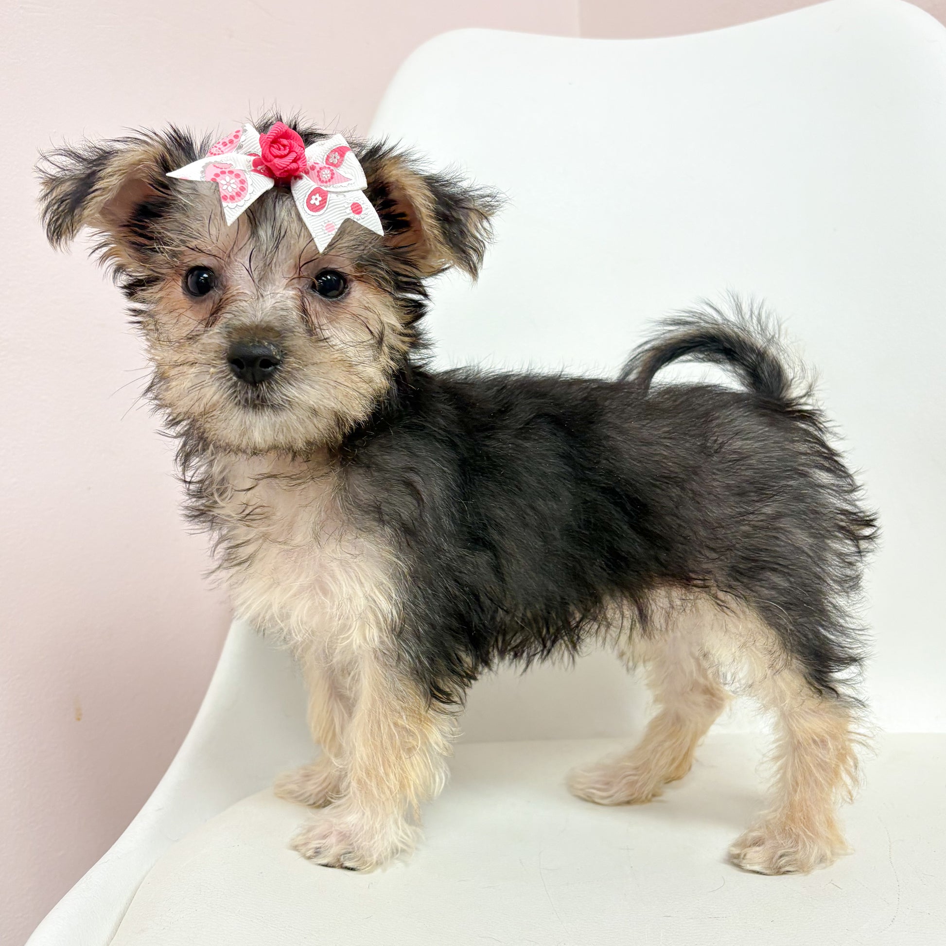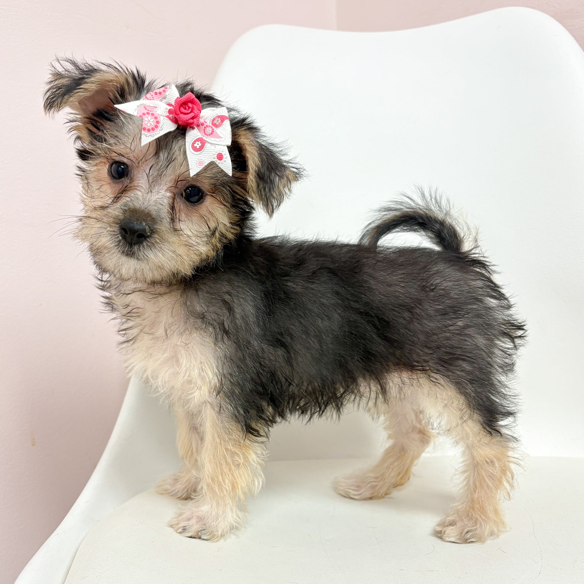 Meet Izzy, the fabulous Female Silktese! Sporting a chic black and tan ensemble, she's the ultimate style icon for your home. This gal’s got looks that could launch a thousand selfies (seriously, get your phone ready)! With her playful demeanor, she’s here to steal hearts and snacks—preferably both!