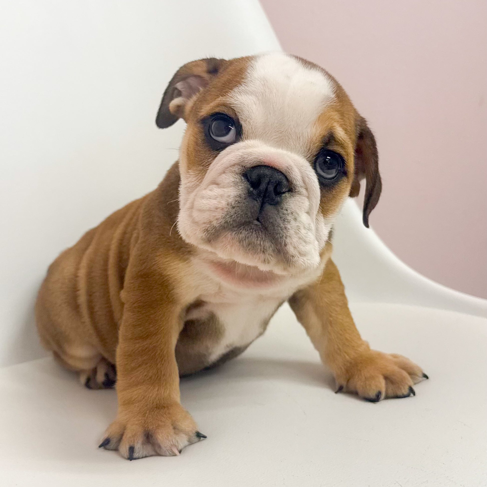 Meet Tank, the charming male English Bulldog who's red and white and ready to roll! With a look that’s as bold as his personality, this pup is sure to become the king of your castle (or at least the couch). He's got the muscle for mischief and the heart for snuggles—just try to resist those adorable puppy dog eyes!
